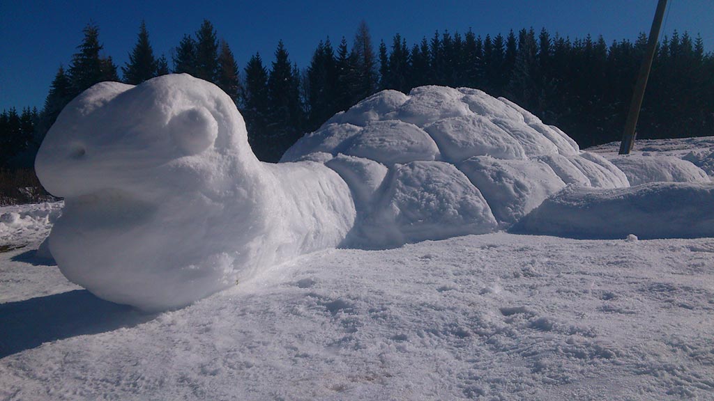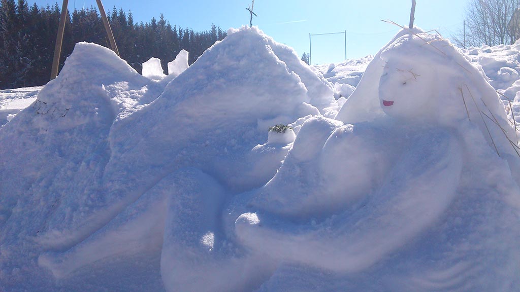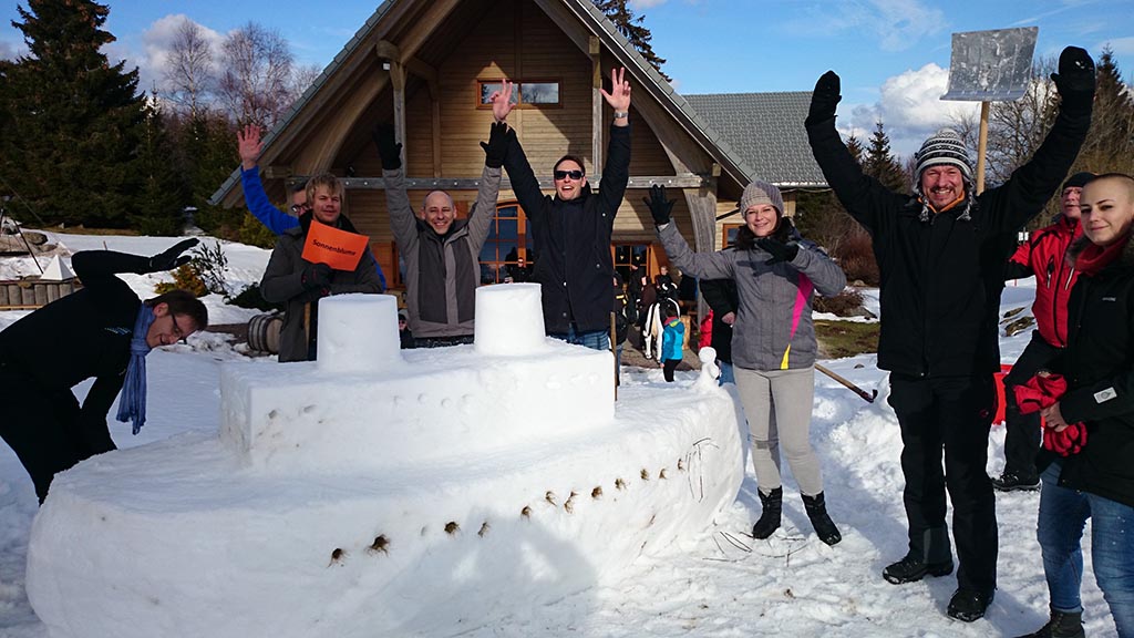 Anfangs ist Kreativität gefragt, denn das Thema für den Schneeskulpturenbau gibt sich das Team selbst vor, bevor es in die weiße Pracht mit Schaufeln, Eimer, diversen Behälter und Hilfsmittel an den Bau geht. Am Schluss findet die Vorstellung und Prämierung der Skulpturen statt.