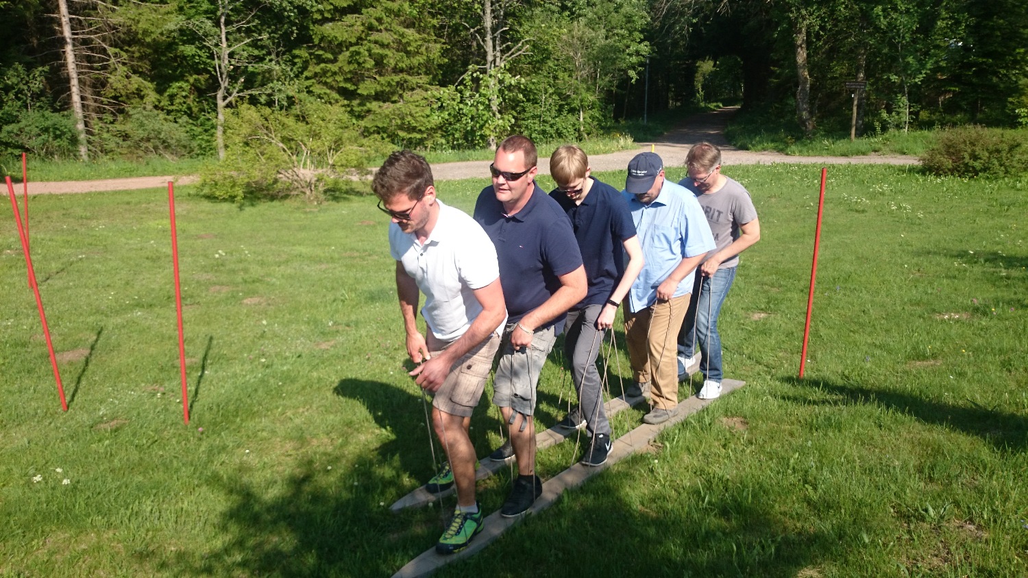 Das Team wird hierbei auf zwei Paar Ski verteilt und durchläuft den Parcours so schnell wie nur möglich. Die Zeiten werden für das Team aufaddiert.